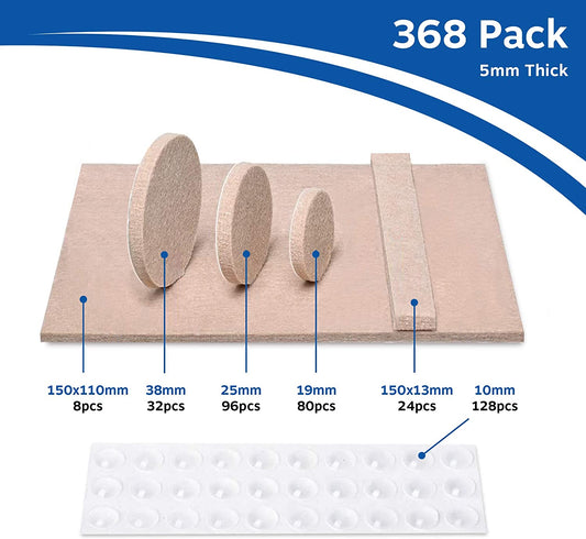 Felt pads for furniture feet 368 pack with clear rubber feet. Beige Chair leg floor protectors. Heavy duty furniture pads with strong adhesion.