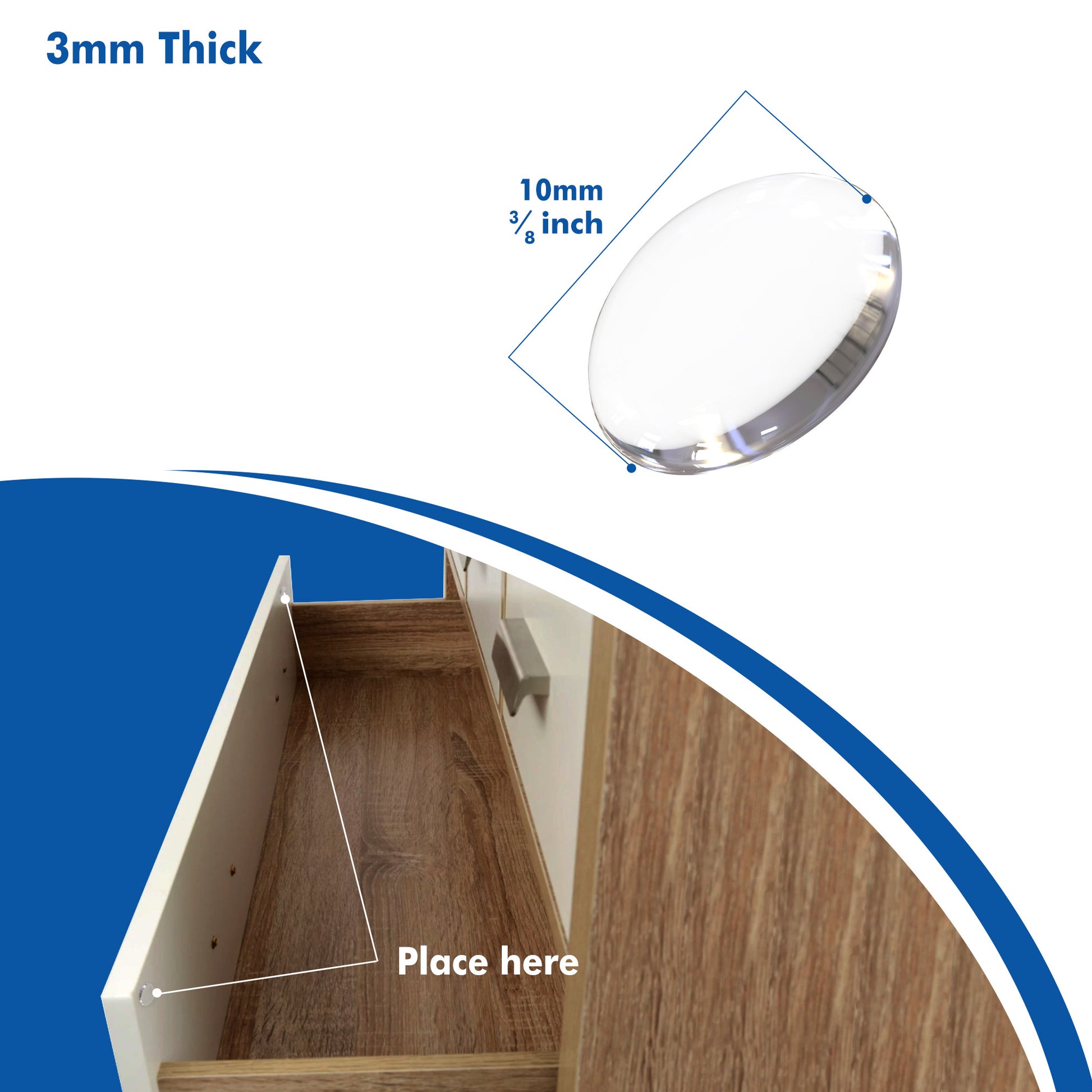 The complementary 0.118 inch (3mm) bumper pads rubber for furniture will provide excellent protection for all surfaces from harsh sounds, scratches and scuffs. Apply to cabinet doors, wardrobes drawers to dampen & reduce noise of slamming. They are non slip & non scratching so will prevent movement of cutting boards, coasters, Electrical items & stop them slipping or sliding off surfaces. .