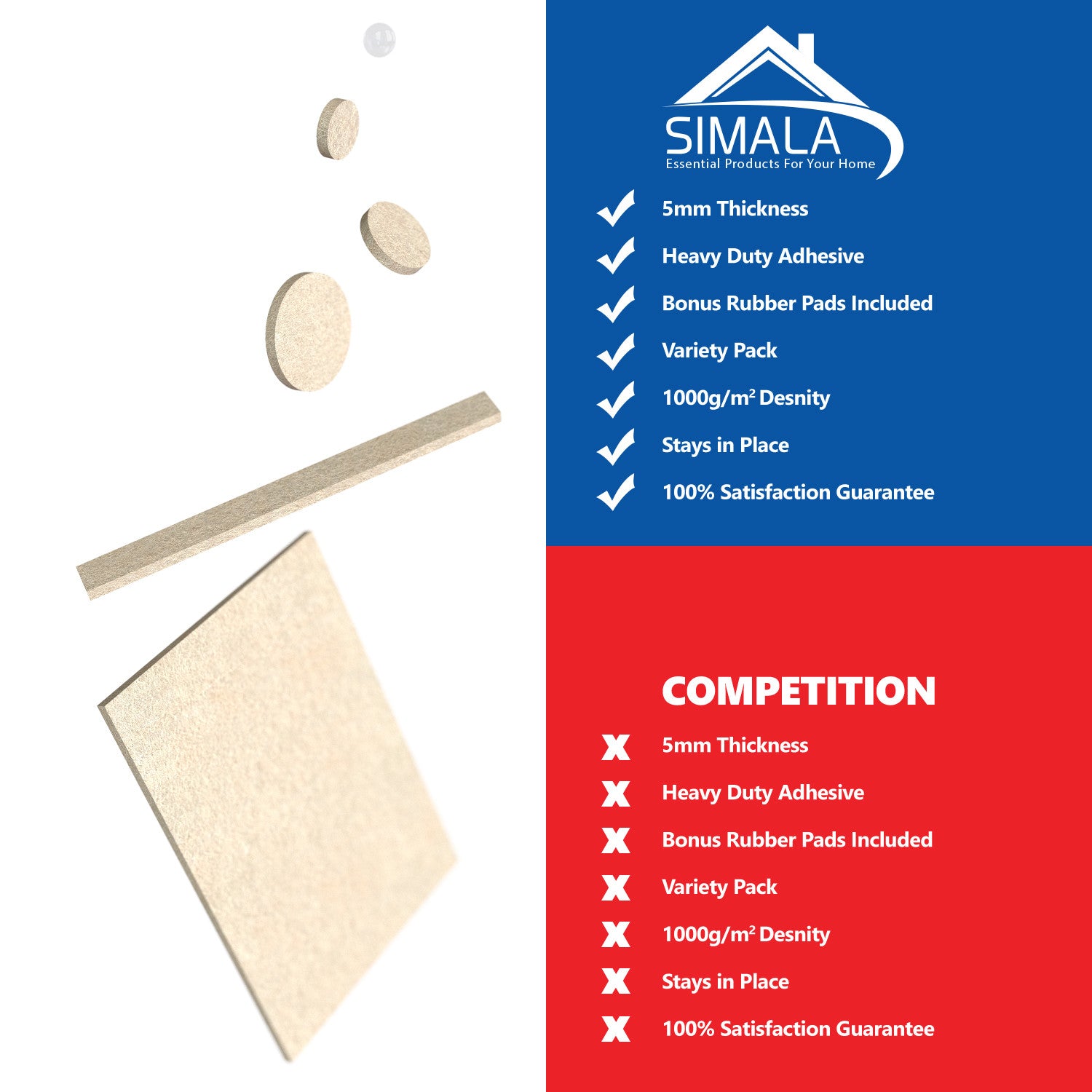 - SIMALA felt floor protectors for hardwood, vinyl, tile, cement floors