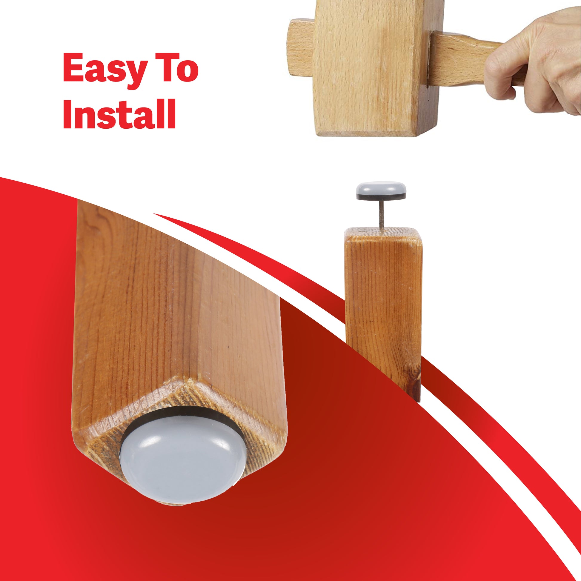 Furniture feet nail-in glides are used as floor protectors to protect hard flooring from chair and table legs. These furniture pads can also be used on outdoor wooden furniture to protect furniture legs, like patio table and chairs, from soaking up water and becoming damp.